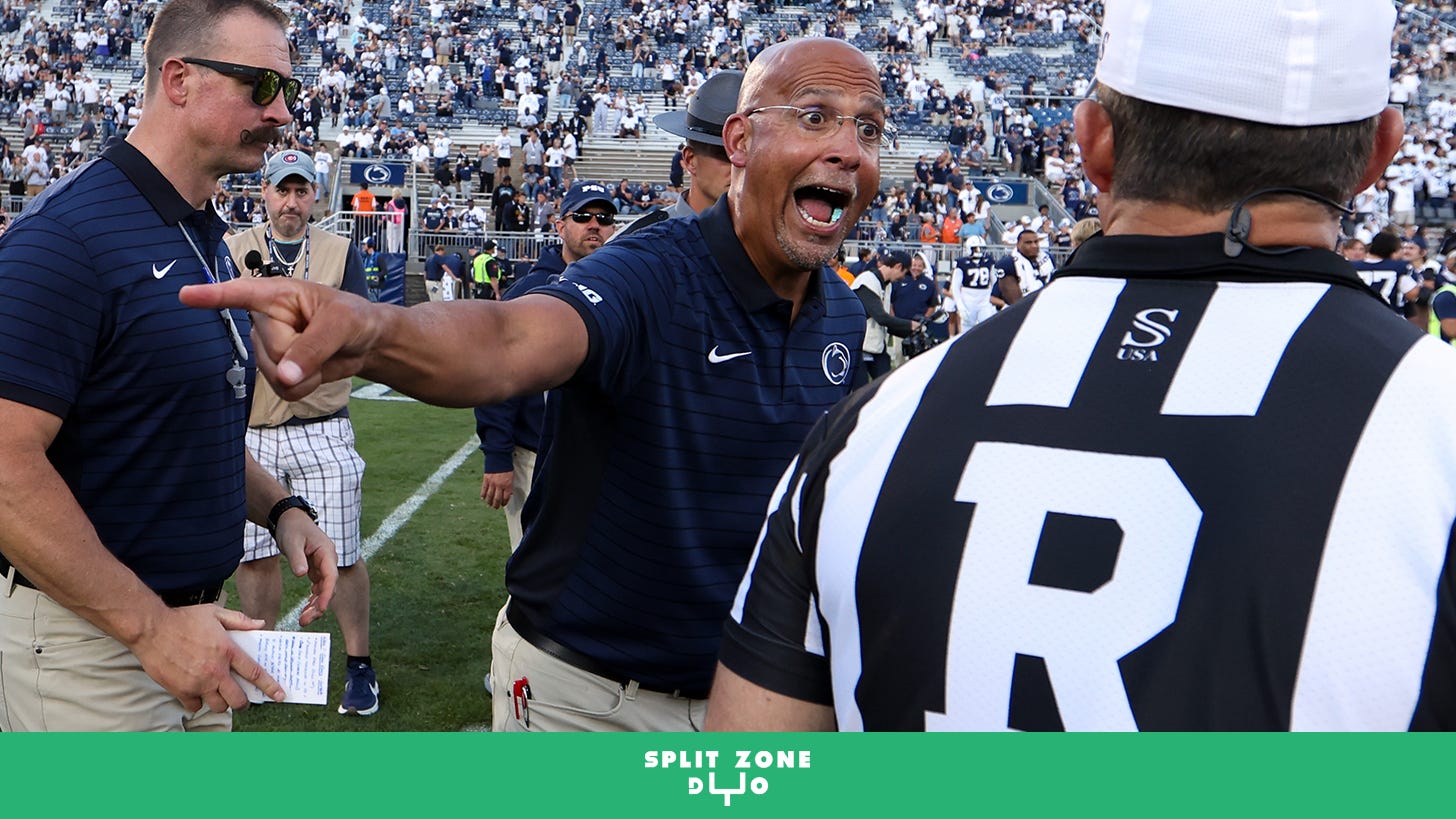 And, of course, Oregon at Penn State: THE MAIN COURSE, featuring Audrey Snyder of Inside the Lions. If you haven’t paid much attention to Penn State in its three warmup games, you’re not alone. Audrey tells us how the Nittany Lions are looking, where the trouble spots might be, and what she makes of this marquee rematch of last year’s Big Ten Championship.