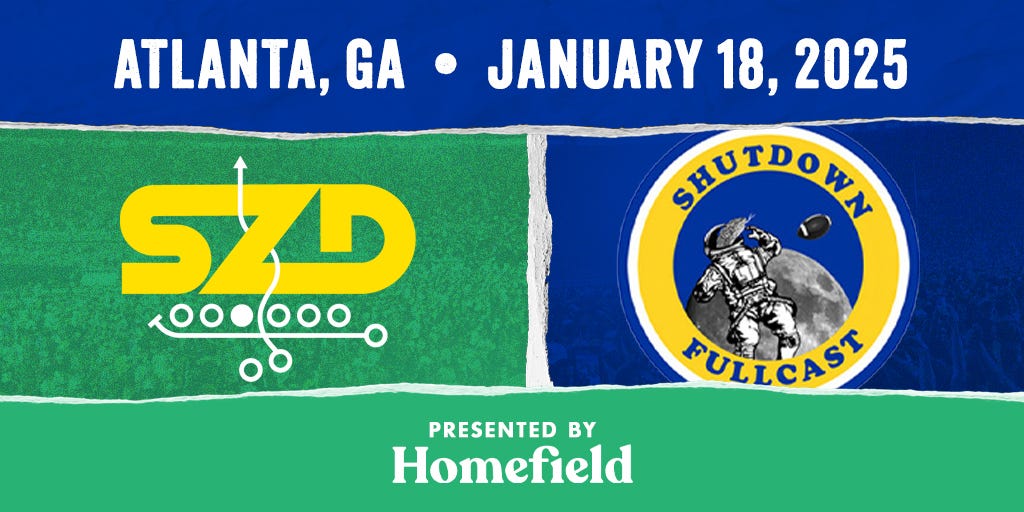 The Shutdown Fullcast and SZD are joining forces for a night of celebration and podcasting. The Internet's Only College Football Podcast gets together with ... another college football podcast? Yeah. It really is a one-of-a-kind event.